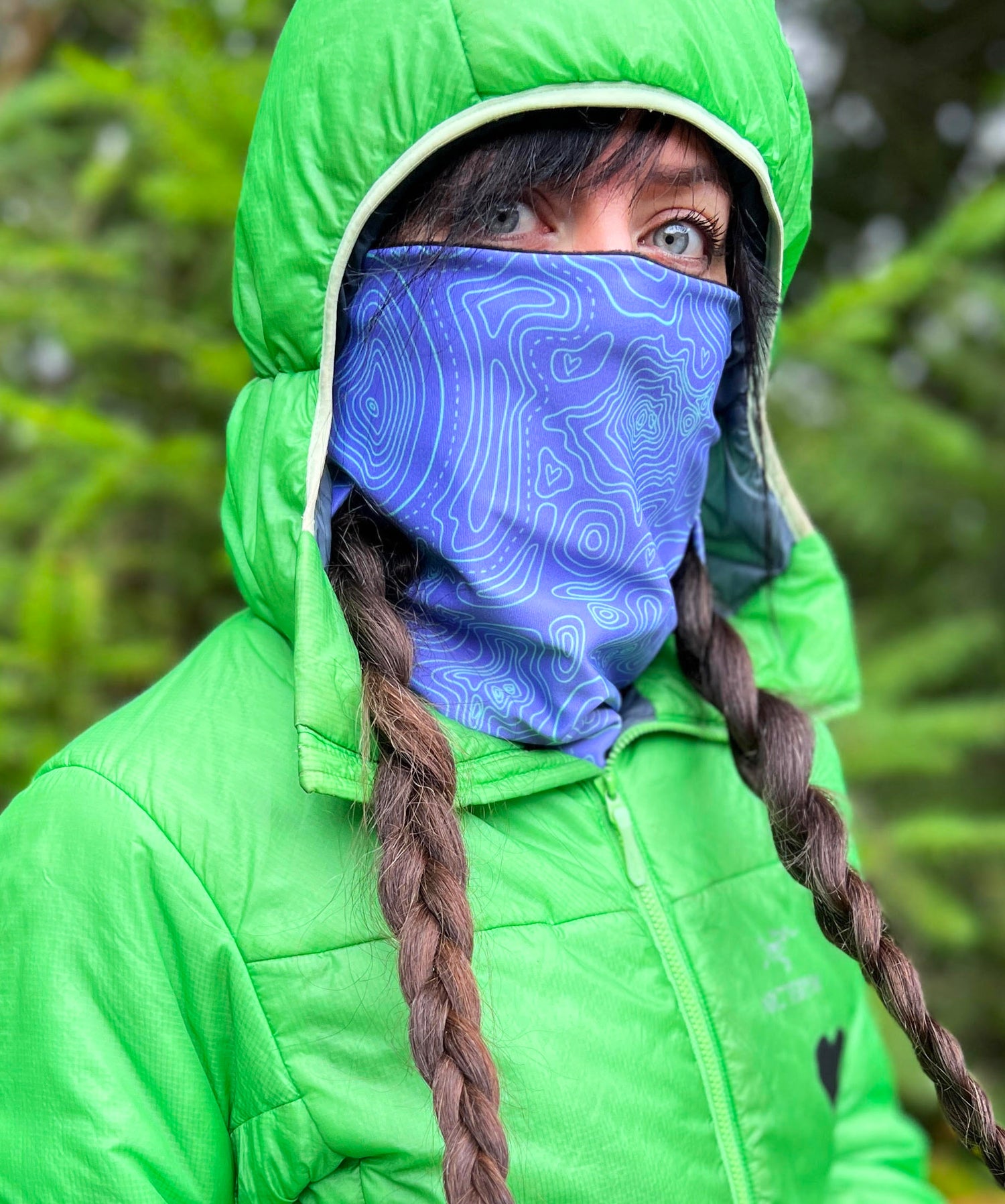This is a double-layered, fleece-lined neck gaiter for cold weather activities. Mindfully designed with 3 unique 'pigtail ports' - the Rapunzel gaiter is specifically designed to be compatible with long hair for active winter pursuits. The gaiter works in three