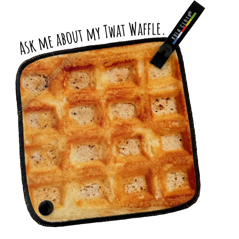 First off, this is a STICKER, NOT a Kula Cloth. It only looks like a Kula Cloth, but it is not one. The actual Twat Waffle Kula is here: CLICK HERE.